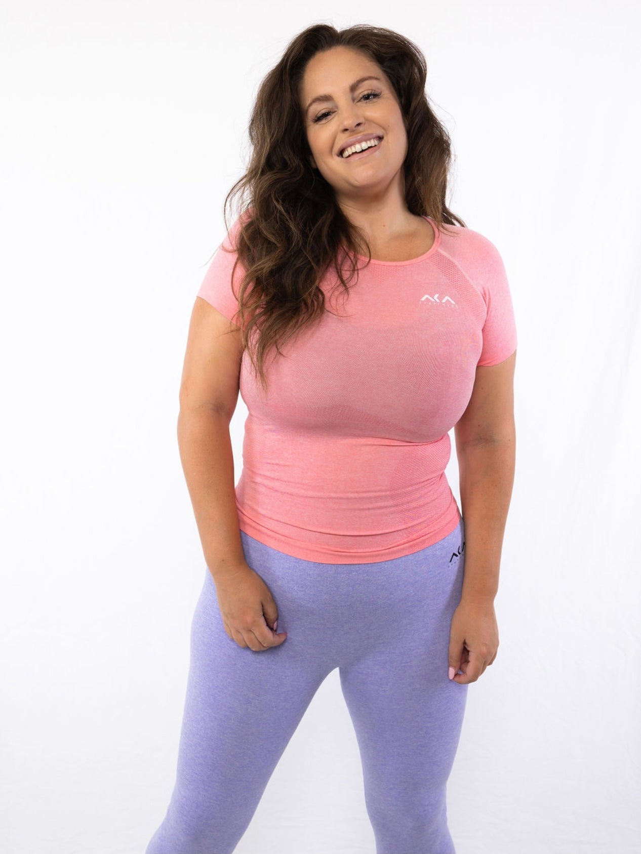 The AKA Seamless T-Shirt is the perfect addition to your workout wardrobe. Made with sweat-wicking fabric, this t-shirt will keep you dry and comfortable during even the most intense workouts. The seamless design ensures a smooth and comfortable fit, while the body contouring technology enhances your natural shape. With a regular fit, this t-shirt is perfect for any type of workout, from yoga to weightlifting.